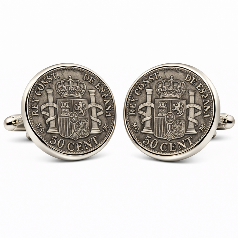 Los gemelos Plus Ultra son verdaderamente excepcionales. Cada par de estos gemelos está compuesto por dos pesetas de plata centenarias, con el icónico escudo de España grabado en ellas. Estas monedas históricas son auténticas piezas de colección y representan un símbolo de la grandeza y la historia de España. Con su diseño elegante y su meticulosa artesanía, los gemelos Plus Ultra son el complemento perfecto para cualquier ocasión, añadiendo un toque de lujo y distinción a tu estilo. Celebra tu orgullo patriótico con estos gemelos únicos que evocan el legado y la tradición de nuestra querida nación.