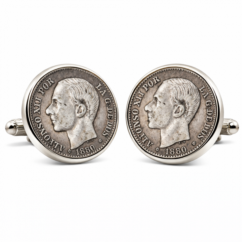 Los gemelos "Pacificador" son una verdadera joya histórica que encapsulan la esencia del Rey Alfonso XII, conocido como el Pacificador. Estos gemelos artesanales están elaborados con monedas españolas clásicas de plata de ley, que datan de hace 140 años. Cada moneda muestra con orgullo el perfil del rey y representa una época de paz y estabilidad en la historia de España. Estos gemelos son mucho más que un accesorio elegante, son una ventana al pasado, una conexión con la grandeza y la nobleza de aquellos tiempos. Llevar los gemelos "Pacificador" es honrar la historia y el legado de un rey que dejó un impacto perdurable en el país. Un tesoro para los amantes de la historia y los coleccionistas de piezas únicas.